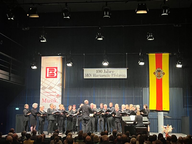 Am 26. Oktober 2025 lud der Männergesangverein Harmonie Pfohren zum Gruppensingen der Ostbaarchöre in den Strawinsky-Saal der Donauhallen in Donaueschingen ein. Anlass für diesen festlichen Rahmen war das 100jährige Jubiläum, das der MGV feierte. Außerdem erhielt der Verein die Zelter-Plakette.