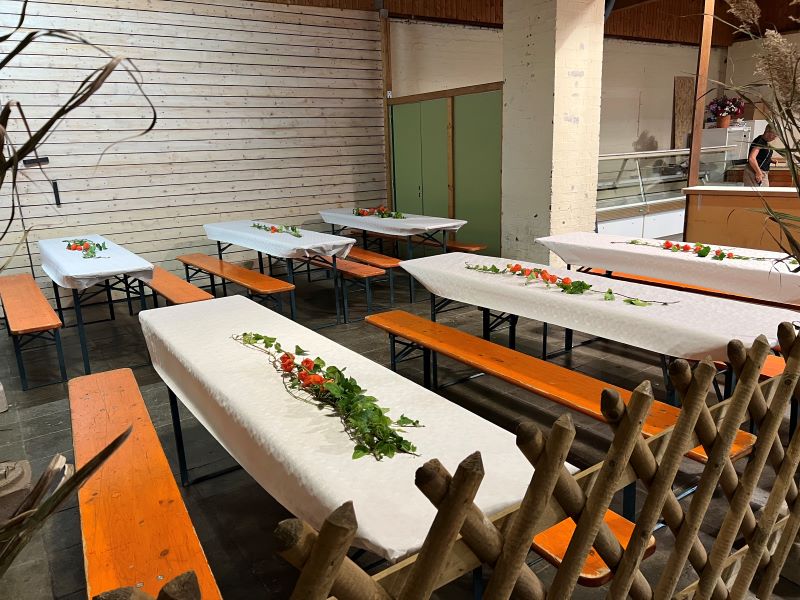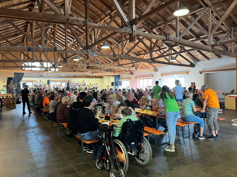 Zum Mittagessen am Sonntag, 21. September 2025 wurde u. a. der beliebte Sängerbraten von der Chorgemeinschaft Baldingen serviert – zum ersten Mal nach 10 Jahren wieder mit einem Salatteller, während der Musikverein Unterbaldingen die Gäste musikalisch unterhielt.
