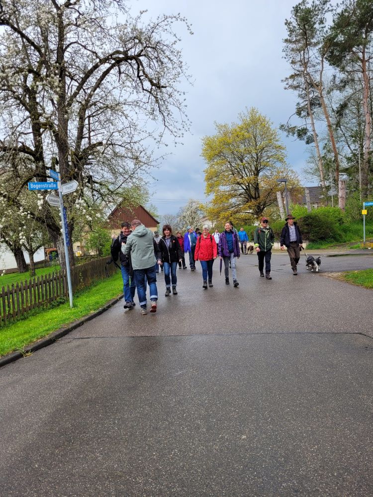 Zur alljährlichen 1.Mai-Wanderung trafen wir uns um 10.45 Uhr am Rathaus in Unterbaldingen. Bei bedecktem Himmel starteten wir zu unserer Einkehr in das Gasthaus Flamme in Bachzimmern. Nach einem einstündigen Fußmarsch legten wir eine kurze Pause ein, in der es auch leider zu regnen anfing. Nichtsdestotrotz liefen wir unsere Strecke mit ca. 11 km eifrig weiter, bis wir dann um 13 Uhr in der Flamme ankamen. Dort warteten in der warmen Gaststube schon unsere Sangeskollegen/innen und Freunde, denen der Weg zu weit oder das Wetter zu schlecht war. Nach einem sehr guten Essen ließen wir den Nachmittag um 16 Uhr ausklingen.