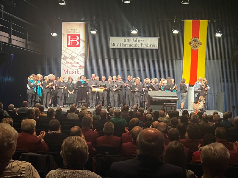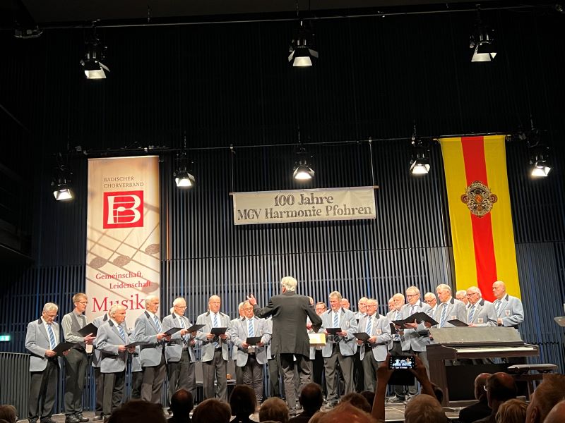 Am 26. Oktober 2025 lud der Männergesangverein Harmonie Pfohren zum Gruppensingen der Ostbaarchöre in den Strawinsky-Saal der Donauhallen in Donaueschingen ein. Anlass für diesen festlichen Rahmen war das 100jährige Jubiläum, das der MGV feierte. Außerdem erhielt der Verein die Zelter-Plakette.