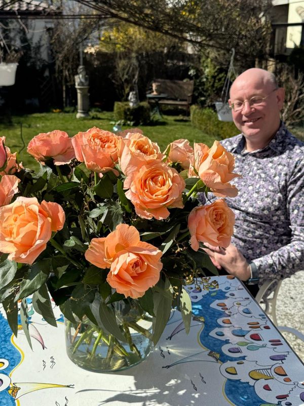 Von der Tochter einer Sängerin bekam er eine tolle Überraschungstorte, über die er sich sehr gefreut hat, ebenso über einen großen Rosenstrauch (man munkelt, er liebt Rosen 😊)