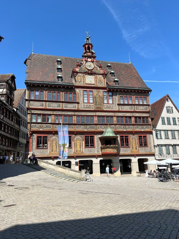 Auf dem Parkplatz Hirtenhaus bei Horb legten wir eine Frühstückspause ein, wo wir uns bei einem Sektfrühstück mit Kaffee und Butterbrezeln stärkten. Anschließend fuhren wir weiter nach Tübingen, wo wir eine Stadtführung bekamen. Tübingen ist eine charmante Universitätsstadt am Ufer des Neckars gelegen. Wir liefen durch die berühmte Platanenallee, die wunderschöne Altstadt mit den verwinkelten Gassen, um die vielen Fachwerkhäuser, den Hölderlinturm, das Schloss Hohentübingen, das Rathaus und die vielen schönen Cafés, Gaststätten und Einkaufsläden zu bestaunen. Nachmittags trafen wir uns zum Stocherkahn fahren. Dies war für alle ein sehr schönes und erfrischendes Erlebnis bei über 30 Grad Temperatur.